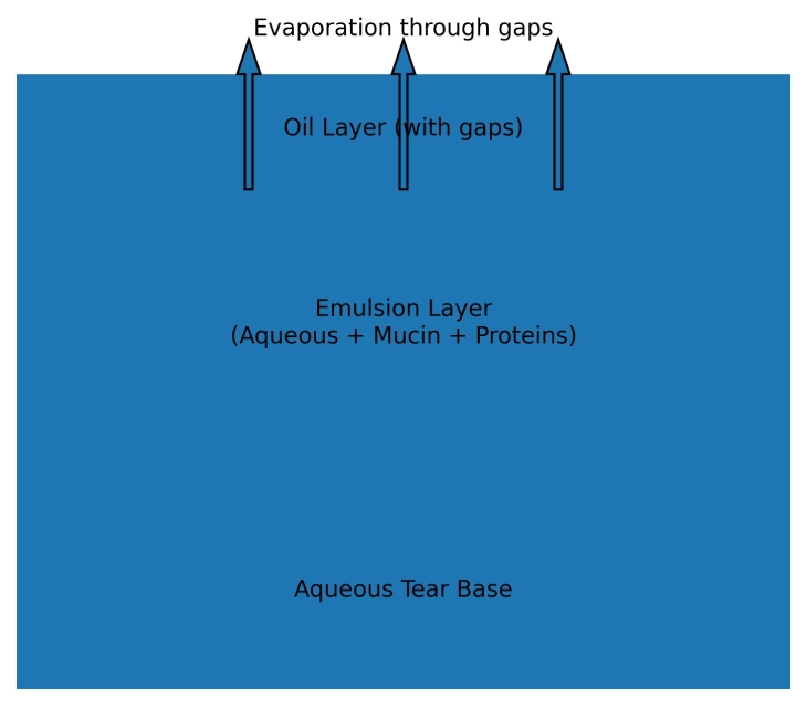 In many patients the oil layer becomes irregular or develops small gaps. When this happens, the aqueous portion of tears can evaporate too quickly.